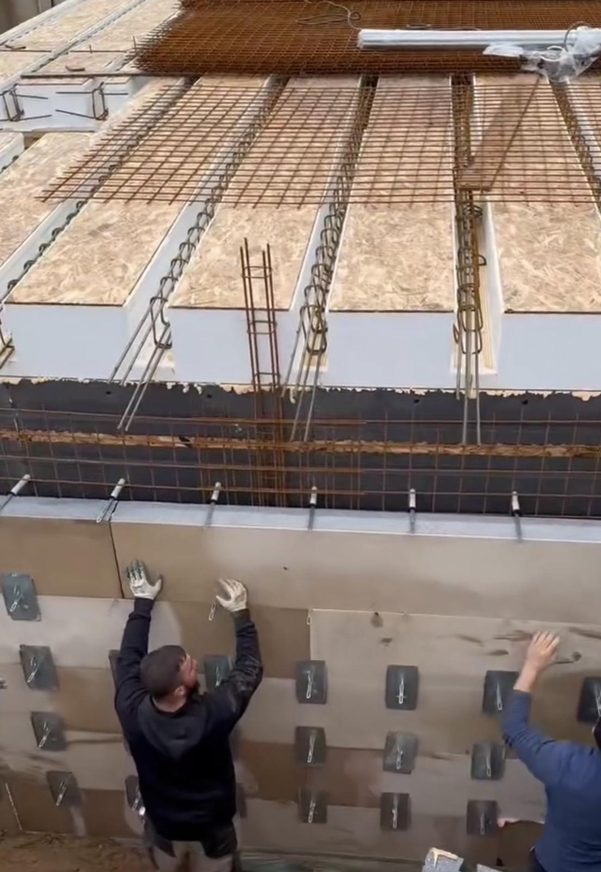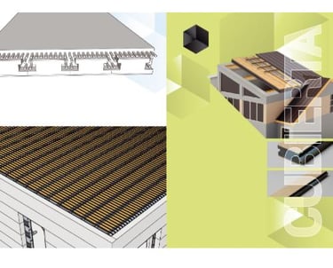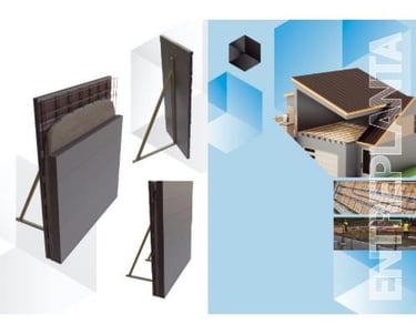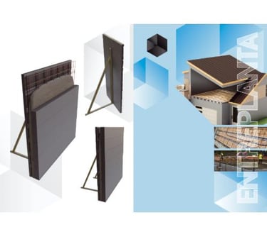 relleno aislante, encofrado perdido para losas y muros, y núcleo en paneles híbridos.