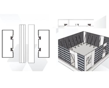 Polistibrick (u otros paneles/piezas de poliestireno o EPS/ XPS combinados con capa estructural) son soluciones ligeras y aislantes que facilitan la obra seca y la termoformación de volúmenes.